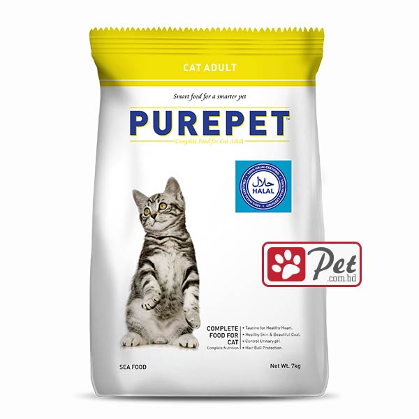 PurePet Seafood Adult Cat food is formulated with essential ingredients to provide overall wellness to your Cat. Enriched with Seafood and other essential ingredients helps your feline to maintain a beautiful skin and coat. Taurine, an essential amino acid that keeps heart healthy and promotes growth and development. It is highly palatable and easy to digest.